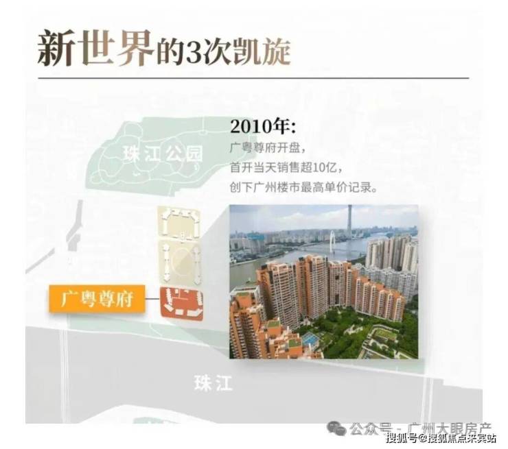 2010年,凯旋新世界广粤尊府首开,当天销售超10亿,一举创下广州楼市的最高单价记录。也正是这一年,广州楼价达到历史巅峰,涨幅为38%。