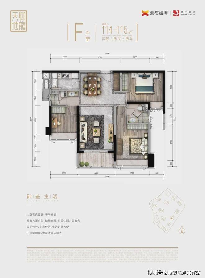 面积:103-116㎡3房3卫197-200㎡4房3卫 公寓124-295㎡
