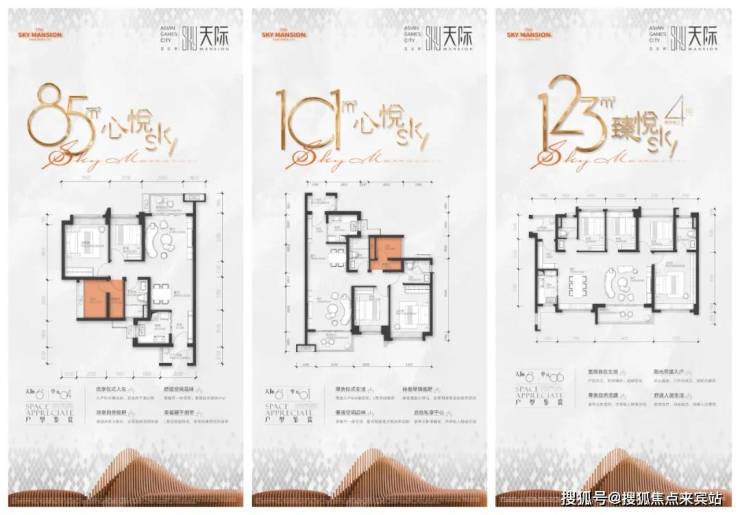 户型:建面约85-227㎡三至四房,180㎡4房2厅3卫&237㎡4+2空间2厅3卫