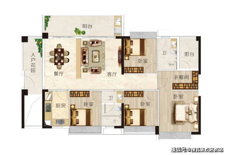 建面约137m² 4房2厅2卫,户型方正实用,动静分区,布局合理,主卧套房设计,尊奢衣帽间,生活精致!