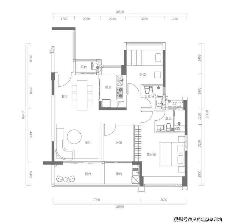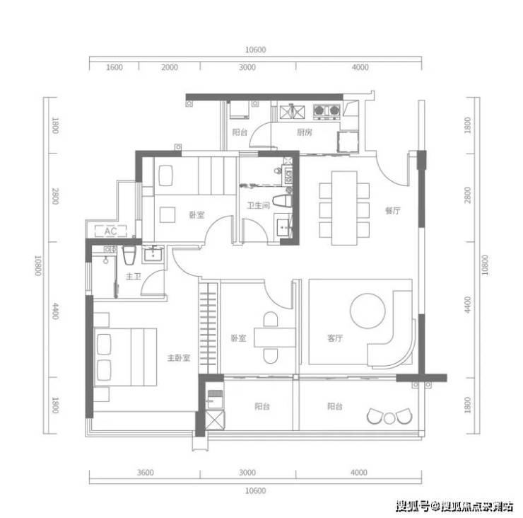 C户型建面约120㎡,3+1房2厅2卫