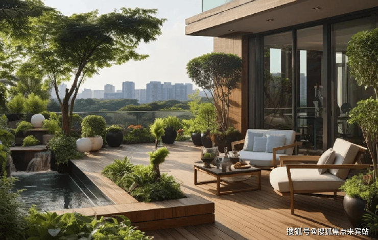【前庭后院】别墅是采取前庭后院的设计做包围式花园,前庭是连接主要归家路,业主可根据需求改为车位或鱼池等设计,有足够的归家仪式感;后院是按客户1:1比例延伸出去的前花园,因建于山边,每户的大小不等,最高可去到220方;
