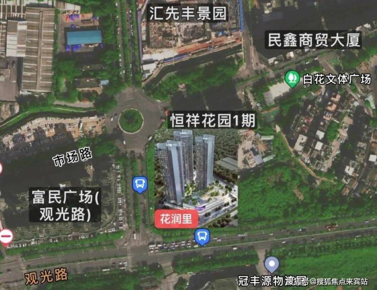 项目位于光明街道观光路北面富民大道路东面(与龙华观澜一路之隔),推广名为:《花润里》原白花社区征地返还用地地块二,规划总建筑面积8.25万㎡,共建设3栋32层住宅、1栋4层幼儿园、1栋4层商业裙房以及社区健康服务中心、物业用房及地下室等。是集住宅、商业、社康、老年日间照料中心等于一体的综合体建筑。