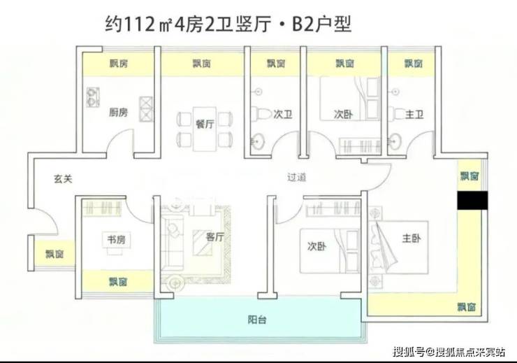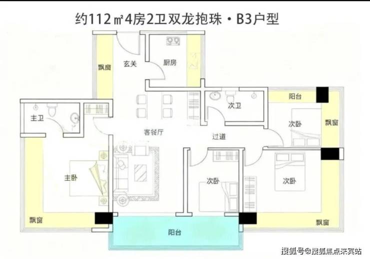约105-122㎡四房:作为“功能型品质起步”户型,凭借新规下的高实用率(包含赠送得房率约100%)选。主卧均带270°环绕式飘窗,户型设计通过飘窗“送了不少面积-。