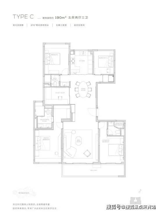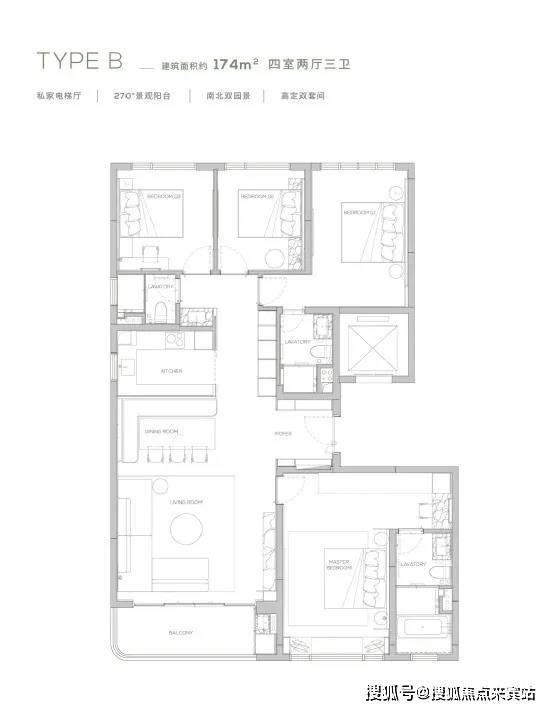 168㎡四叶草户型 四室两厅三卫