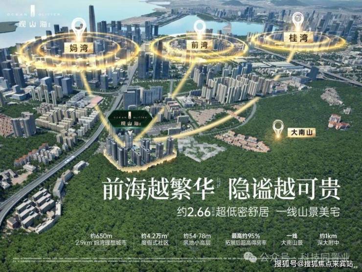 在区位上,项目毗邻大南山,属于南山中心区荔湾板块,靠近前海妈湾片区和蛇口片区;附近有妈湾在售的万科瑧湾悦价格在10.5万,观山海家园售楼处电话:4008368707,以及即将入市新盘有妈湾的前海招商臻玺预计在10万左右,项目这两个项目观山海花园并不在妈湾核心位置,属于比较边缘地界了,后面入市大概率价格方便也会稍微比较低一些,项目相比于这两个小区优势在于景观背山面海以及大社区花园。