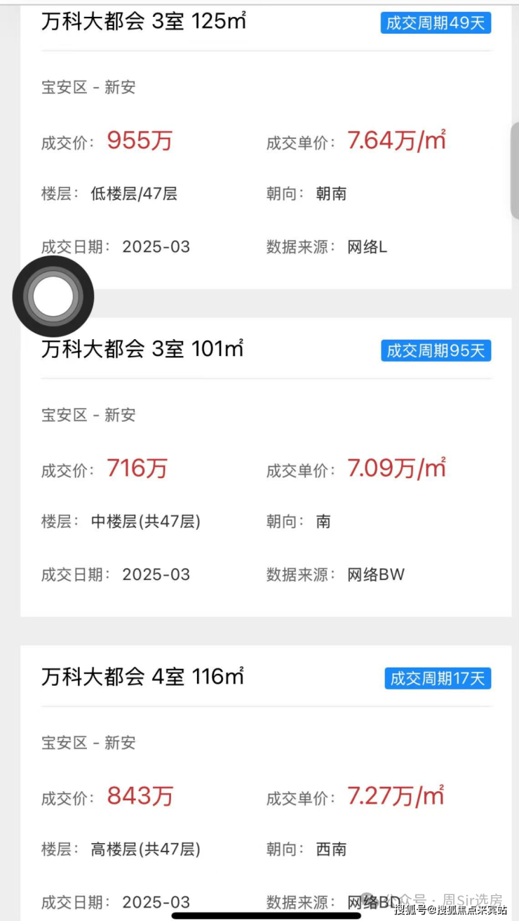 比如与项目紧邻的万科大都会,今年3月成交一套101㎡户型,总价约716万,折合单价约7.09万/㎡。