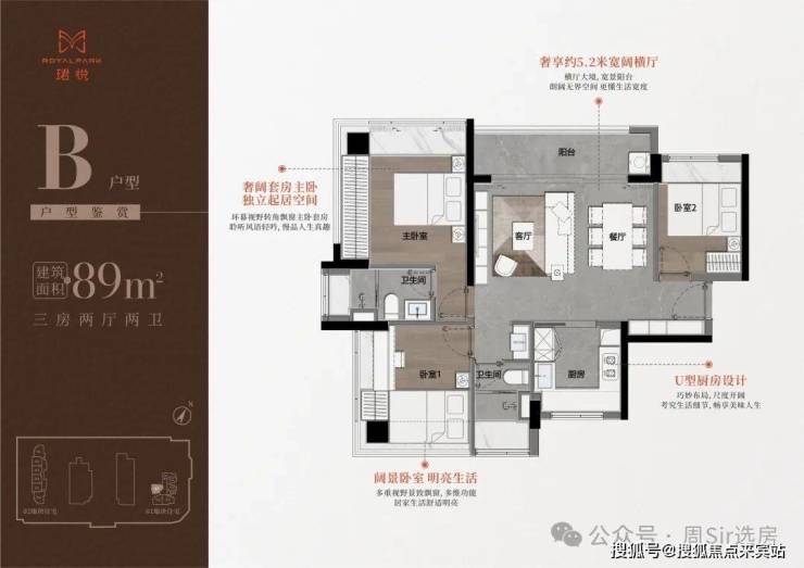 💰B户型西北向仅29套,大横厅户型,5.2的客厅开间,双龙抱珠户型,使用率98%