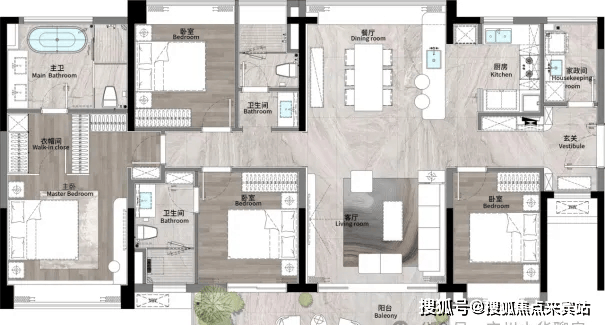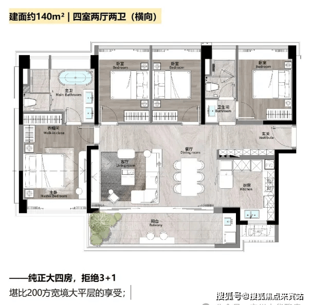 建面约140m² | 四室两厅两卫(横向)