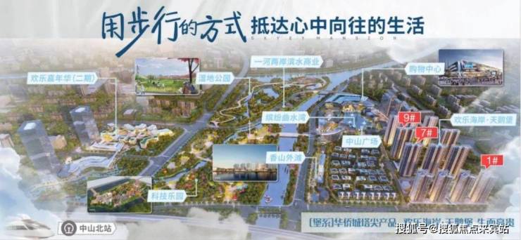 华侨城欢乐海岸坐落于岐江河边,总占地近30万方,投资约80亿元,规划了缤纷曲水湾商业街、时尚综合体、度假酒店、科技乐园、创意文化园、乐活居住区、生态湿地公园等不同功能和业态板块,为中山带来一张全新的城市名片,2024年建成开放。