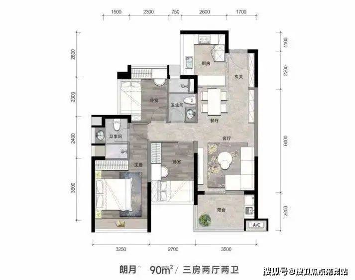 【朗月】90㎡,3房2厅2卫
