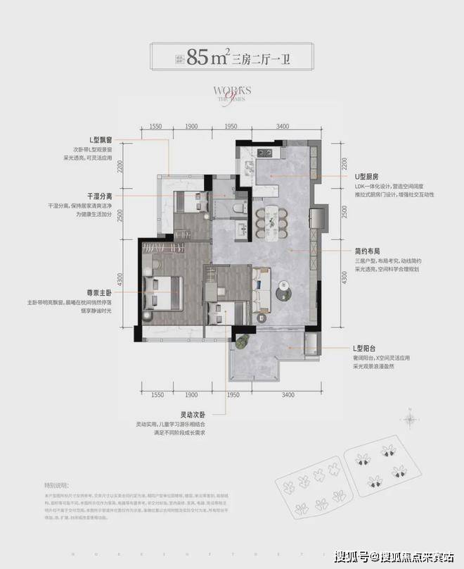 93㎡通透户型有东北/西南通透和西北/东南通透两种,该户型的优点是独门独户、客厅通透、动线清晰、餐客厅独立性好,但动静分区做的就比较一般,客厅阳台不是优势朝向。