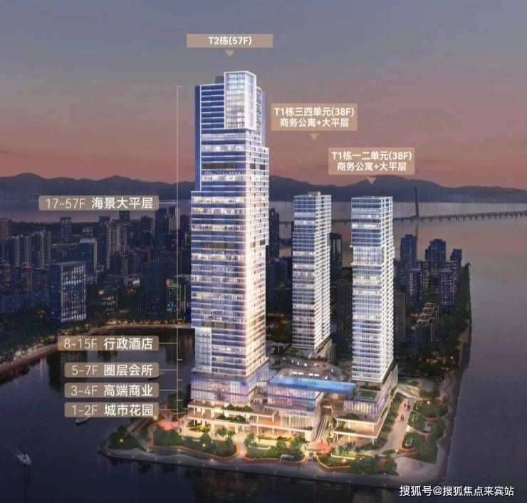 作为深圳湾滨海休闲带的重要节点和门户性地标,项目总占地面积约2.5万㎡,建筑面积约28.9万㎡,包含办公、商业、酒店、商务公寓等多种业态,还配有一个1800㎡的海洋博物馆。