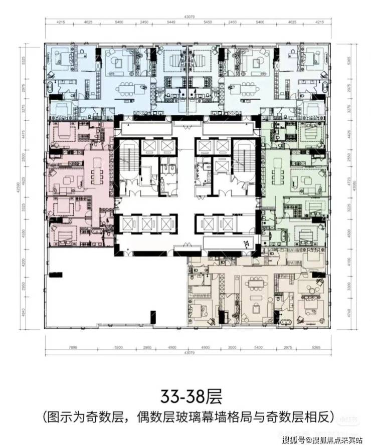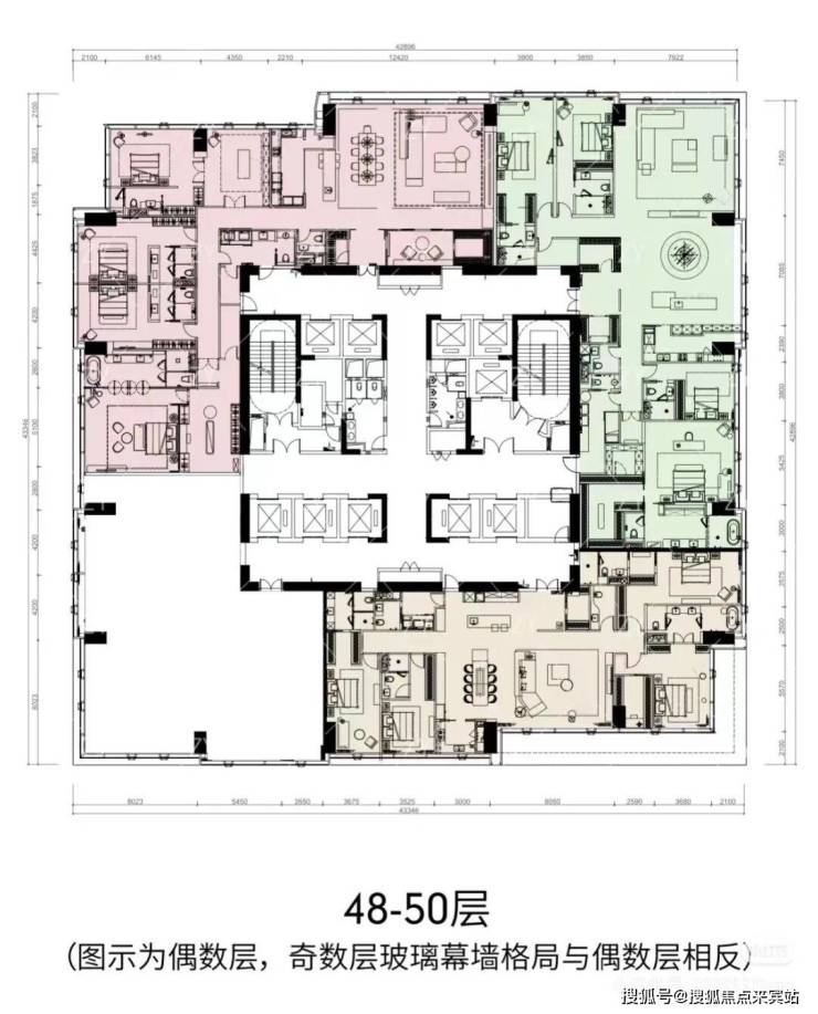 ★468㎡五房三厅六卫:位于1栋一、二单元高区33-38层,一层一户,仅6席。五房四套房设计,主卧L形全景落地窗,270°最佳观海位,南向超大三厅一体,动静分区布局有序。