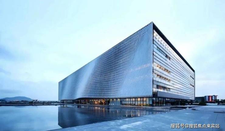 利落挺拔的竖向金屋线条,如千帆竞发的桅杆,大面积坡璃幕墙,光影流转,建筑与前海潮夕同频共振,