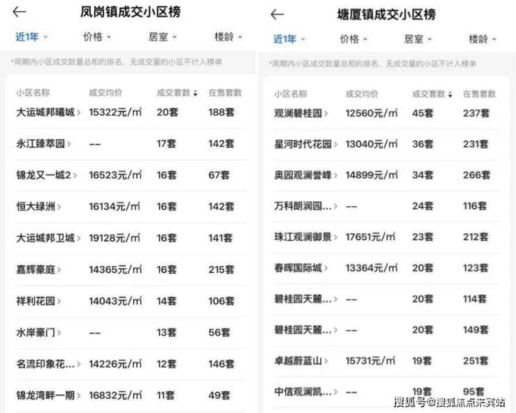 从成交榜单看,塘厦的观澜碧桂园、星河时代花园、奥园观澜誉峰、万科朗润园等小区,近一年成交都在20套以上。