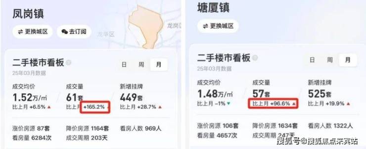 从贝壳网也能看出,凤岗3月二手成交大涨165.2%,塘厦3月二手成交大涨96.6%。