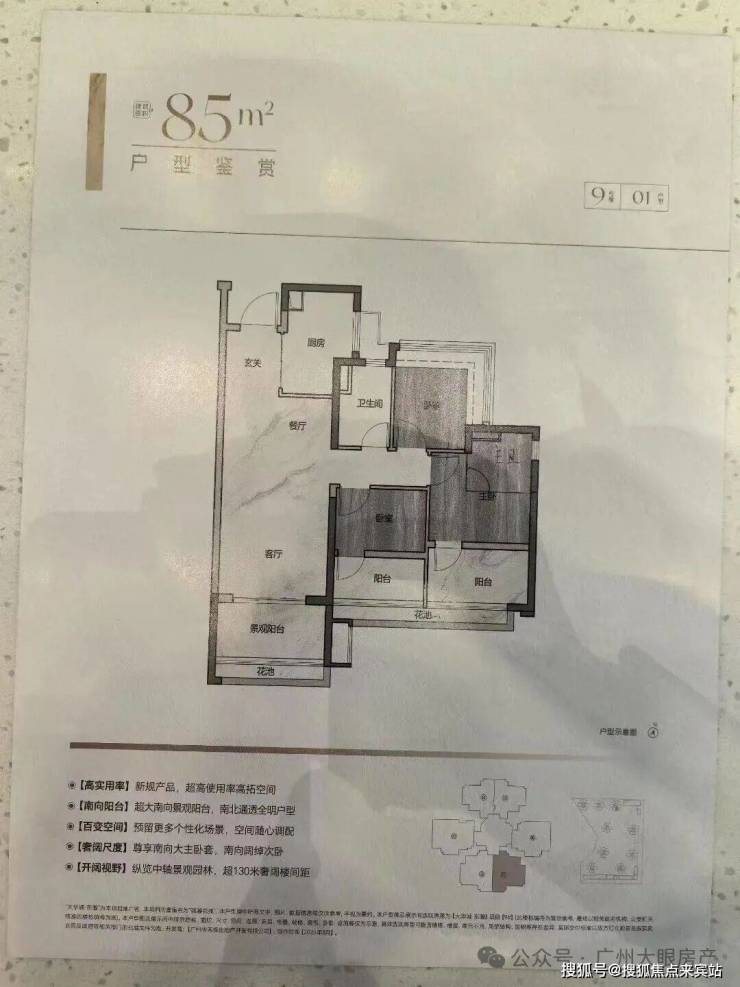 • 85㎡3房2卫(纯南向望花园):130米楼间距,采光视野绝了!抵得上旧规100平,还没小房间憋屈;