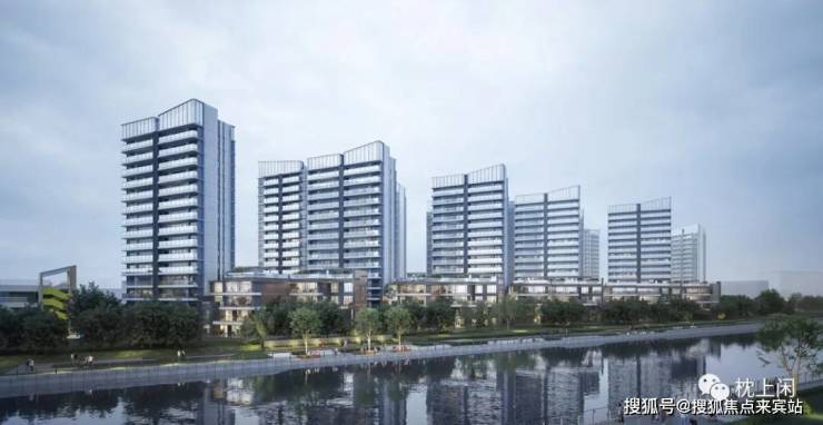 户型排布从石榴岗河自东向西依次升高,保证了约300米宽的生态水景面。