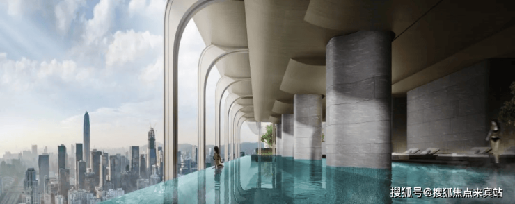 云端会客厅——全国首创约150米高空会客厅,约150米高空,打造了一处连接A、B、C三栋塔楼,面积约6000㎡的业主共享云端会客厅。涵盖无边际恒温泳池、宴会厅、天际健身房等休闲运动功能,使业主在家即可享受如五星级酒店会所配置,方便、舒心。