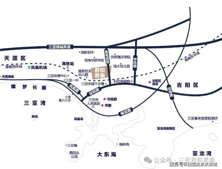 君和君泰项目位于三亚环城高速荔枝沟出口处(琼州学院对面),属于政府重点规划的月川—荔枝沟—抱坡岭片区,该区域重点规划定位为文化教育、商业贸易核心区;由学府教育区、公共服务区、行政商务区、生活配套区、文化商业区及品质居住区所组成。