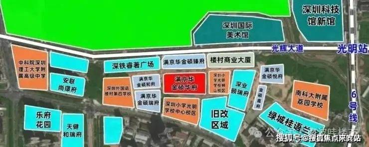满京华金硕,前身为光明狮山利益统筹项目,由满京华集团全盘操刀,涵盖有10块用地,总占地面积约10.9万㎡,总建筑面积约32.38万㎡,其中住宅用地有7块,返还用地1块,公共绿化用地2块,住宅用地有:满京华金硕和府,满京华金硕瑞府,满京华金硕臻府,满京华金硕华府,满京华金硕悦府,满京华金硕嘉府。