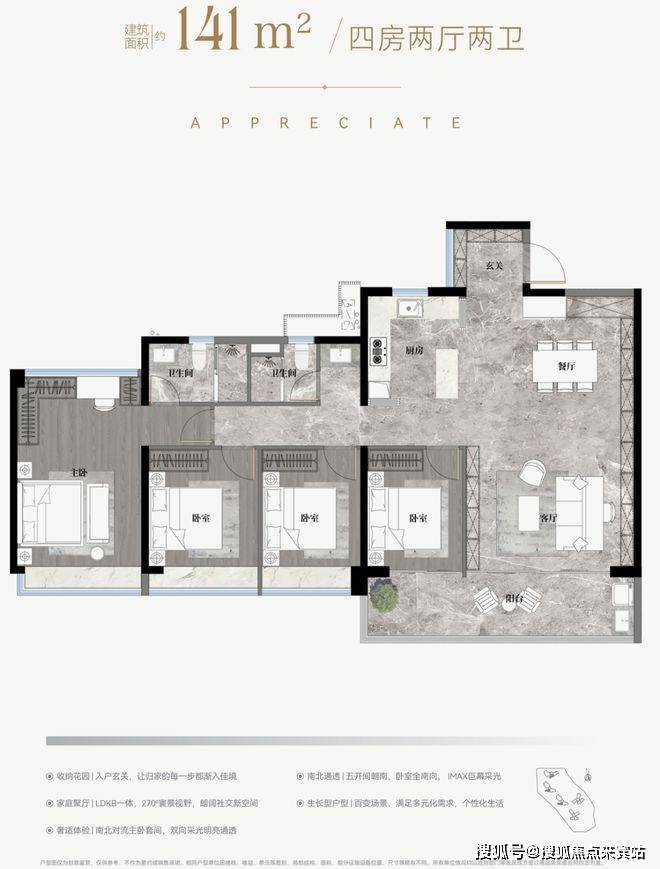 王牌户型:二期推出的全新迭代超新规户型包括105平方米和128平方米两种,均采用了四开间朝南的设计,LDKB一体化布局使得室内空间更加开阔明亮。特别是128平方米户型,南北对流,超14米的南向面宽,保证了充足的采光和通风,配备净宽5.05米的巨幕宽厅和净宽4米的奢阔主卧,8.65米的IMAX阔景阳台更是无遮挡看低密墅景,为主人带来极致的生活体验。