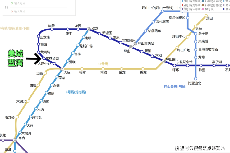 美域蓝湾距离深惠城际“大运北站”(在建)约1.3公里,16号地铁线“龙城公园站”约1.1公里,步行约15分钟即可到达,2站到大运枢纽站,可以换乘3/14号线,还有深大城际快线。