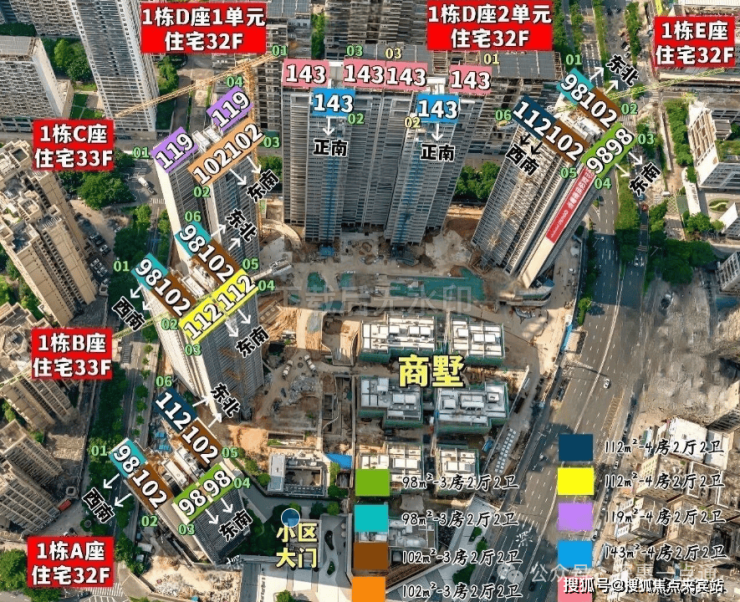 梯户比:1栋A/B/E座3梯6户,1栋C座2梯4户,1栋D座2梯3户