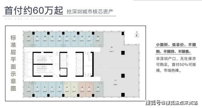 【会见世界的深圳之窗】约180m城市坐标,涵盖首层商业、空中花园等多元功能。建筑面积约25-270㎡云端私域,约4.5m奢阔层高,百变灵动空间。270°大面宽玻璃,直望京基100、荔枝公园,成就堪比纽约中央公园的观景视野。配置星级大堂,近12m挑高,威仪不彰自显。双银Low-E中空玻璃,采用内开启扇设计,同频当代国际建筑美学;6部日立电梯,高效商务体验。