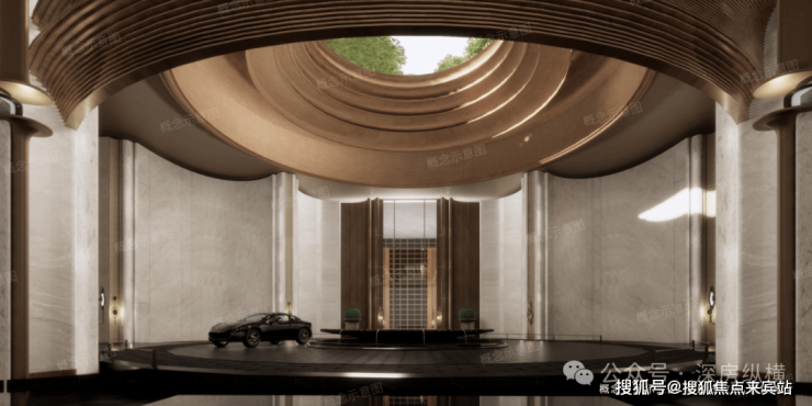 匠造「地下落客-首层迎宾-上层漫游」创新三重立体归家礼序,将东方吉祥寓意融入归家动线。主入口东向而开,承紫气东来祥瑞;约9米挑高车马厅,蕴九五至尊之吉;臻植造景藏八方来财;圆穹顶纳天圆地方格局,其下圆形水景藏风,生水起之兆。每一步皆有光影随行,步步藏礼,层层见境,归家即归心。