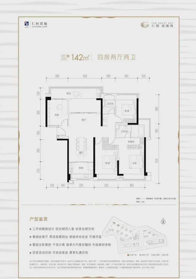 建面约142平方米 四房两厅两卫