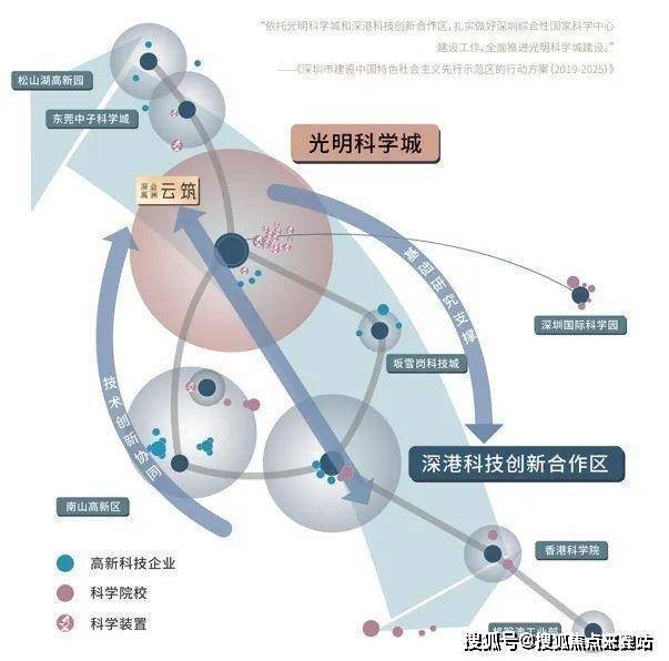 光明南接深圳南山科技园,北联东莞松山湖,向上链接东莞水乡新城和广州大学城,是粤港澳大湾区的重要战略节点,占据中国科创发展大动脉;汇聚中山大学深圳校区、国家超算中心等世界一流科创资源,打造世界一流科学城。