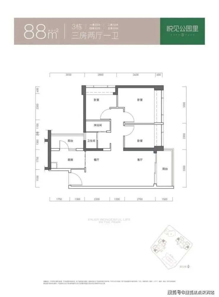 3房2厅1卫88㎡