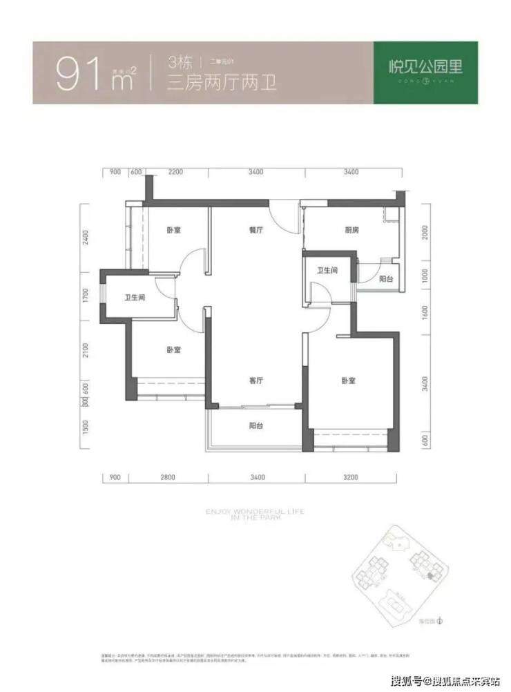 3房2厅2卫91㎡