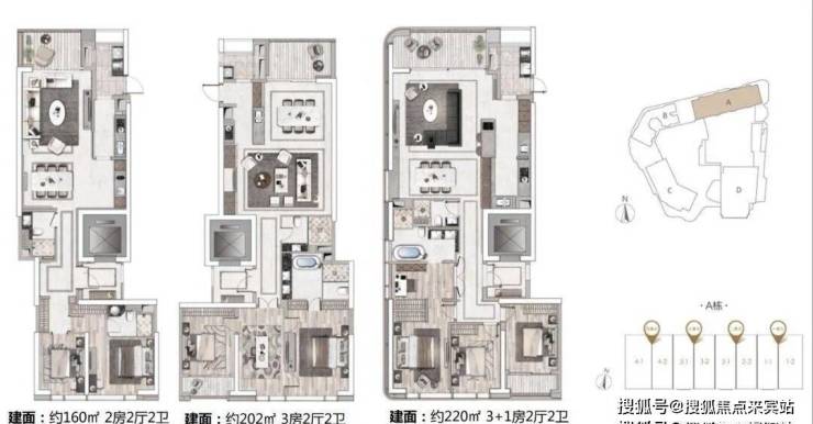 A栋产品:160-200-220㎡ 2-3+1房云端美寓