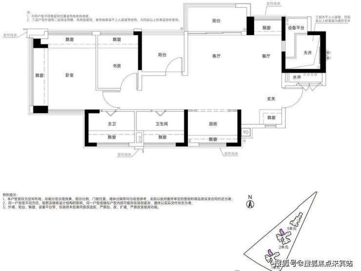 约78㎡的2+1房2厅2卫,设计的是竖厅LDKG+X格局,S墙设计预留冰箱卡槽位,做到了主卧双飘窗,三开间朝南,动静分区,U型大厨房,厨房烟道还做了外置空间,可以更好的利用厨房空间,卫生间三段式干湿分离。赠送了双阳台一半面积+6面飘窗+双设备平台,超100%得房率,东南或西南朝向。这是整个红山板块唯一一个80平以下做到了3房2卫的户型。