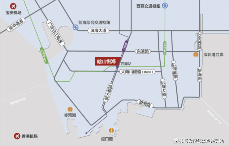9号线南海大道支线、12号线、15号线四海站。半小时通达深圳机场、前海综合交通枢纽、太子湾邮轮母港以及深圳湾口岸。