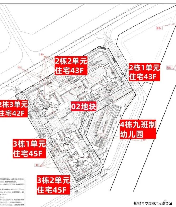 02地块:总占地面积约1.78万㎡,总建筑面积约19.7万㎡,计容建筑面积约13.7万㎡,容积率7.71,绿化率30%,共由5栋42-45层高住宅组成,分别是2栋1/2单元住宅43层,2栋3单元住宅42层,3栋1/2单元住宅45层,4栋配建1所9班幼儿园。