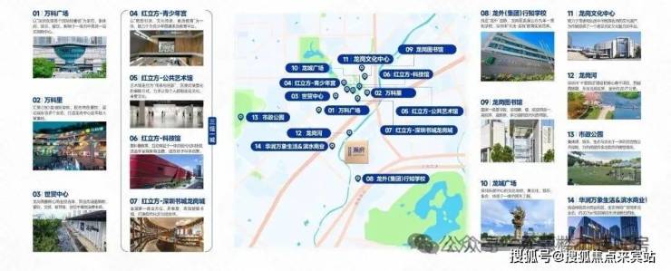 文体配套:三馆一城(公共艺术馆、青少年宫、红立方科技馆、深圳书城龙岗城)、龙岗文化中心;