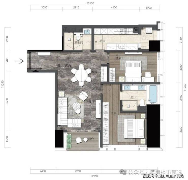 约164㎡2房2厅2卫(独立入户玄关,动静分离,约33㎡豪华主卧,承载品质生活)