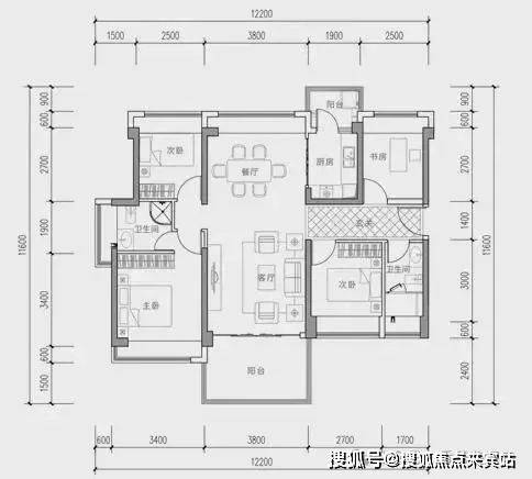 (四)104-119㎡4 房 2 厅 2 卫:宽敞四房,南北通透