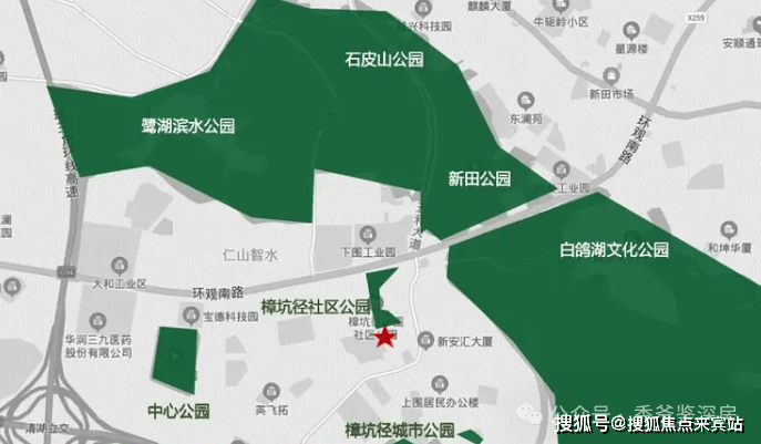 毗邻六大公园,包括樟坑径社区公园、鹭湖滨水公园、樟坑径城市公园、白鸽湖文化公园、中心公园、新田公园,以城市绿肺之姿,执掌天赋生态资源。