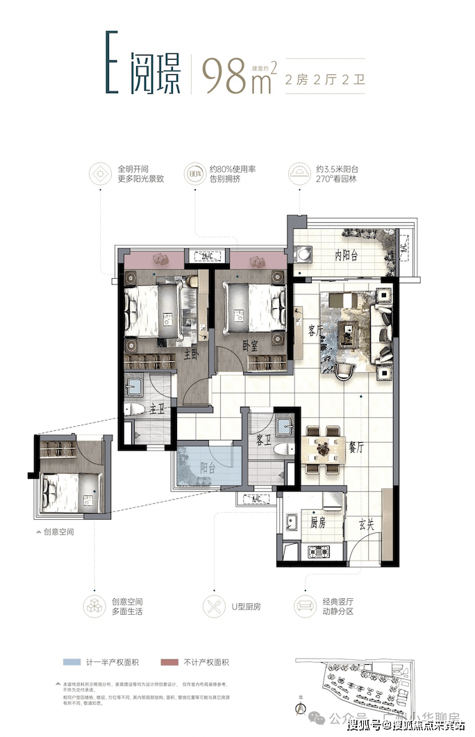 ·户型升级,南向全明空间,超8成实用率