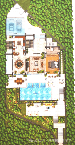 私家超大泳池,草坪活动区域,阶梯式园林分布合理规划园区