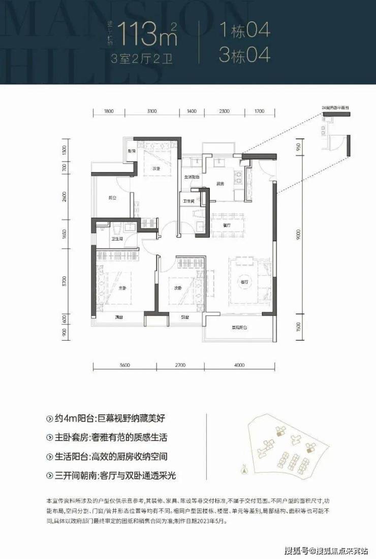 :得房率88%-91%,三开间朝南+6米景观阳台(实得面积约81.8㎡)