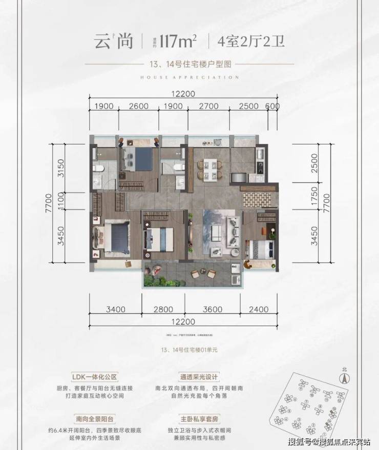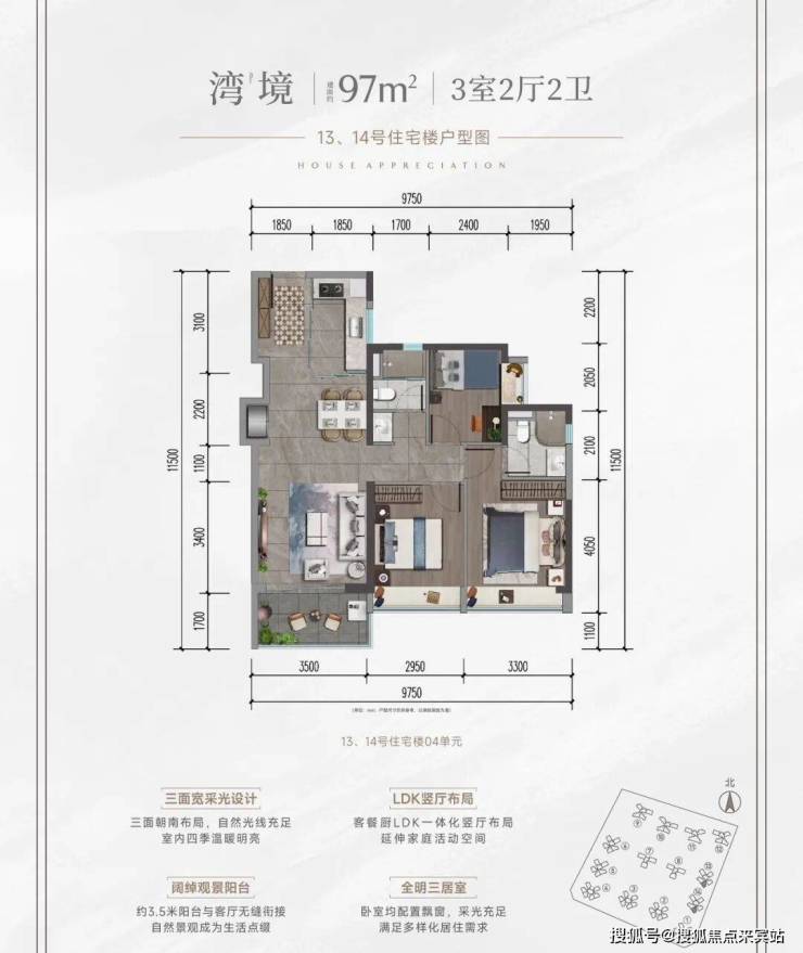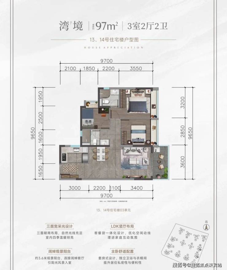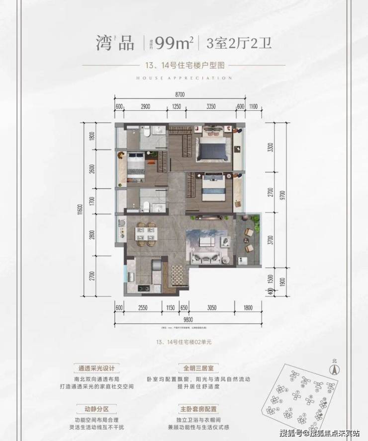 改善细节:大面宽阳台、主卧套房设计、明厨明卫。