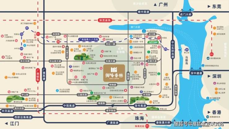 御峰香林所在的火炬开发区傲踞深中通道桥头堡战略要地,是中山向东发展与深圳融汇的首站,被赋予“城市副中心”的发展地位,成为下一个价值爆发地。项目约2.5公里达深中通道博爱路出口,临近广州地铁18号火炬站&张家边站(在建),疾速融入深广繁华都会生活圈。