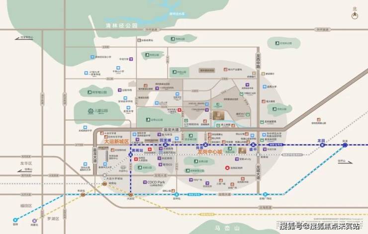 拥抱龙岗中心绿核,比邻回龙河绿道,近享回龙铺公园、证券山公园、将军帽公园、龙潭公园等周边十园环抱,临河而居,于自然与繁华间,独处亦安澜。
