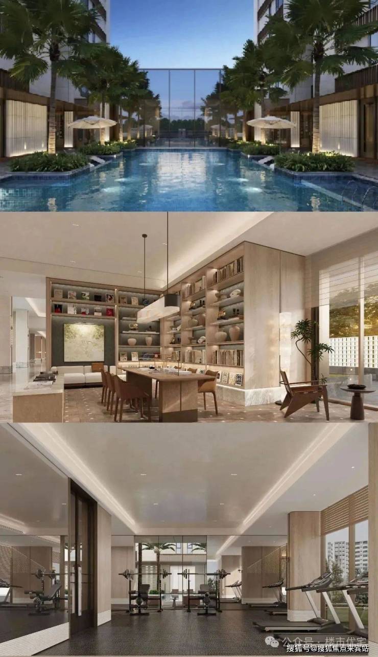 逾1000㎡高端艺术会所,涵盖有氧健身、无氧健身、瑜伽跳操室、泳池、咖啡吧、书吧、会客厅等功能,私享隐奢社交主场。